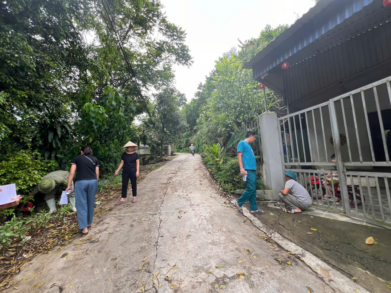 Chiều ngày 03/9/2024, UBND thị trấn Hùng Sơn tiếp tục tổ chức căm mốc, xác định vị trí cần mở rộng, kiểm đếm diện tích hiến đất và tài sản trên đất để mở rộng đường 6m tại TDP Hợp Thành, thị trấn Hùng Sơn