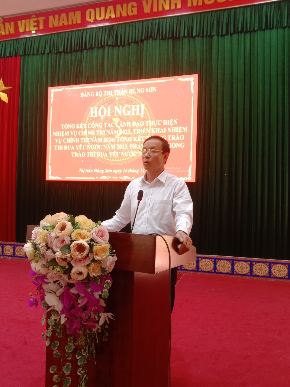 Sáng ngày 14/12/2023, Đảng bộ Thị trấn Hùng Sơn tổ chức Hội nghị tổng kết công tác lãnh đạo thực hiện nhiệm vụ năm 2023, triển khai nhiệm vụ lãnh đạo năm 2024; Tổng kết phong trào thi đua yêu nước năm 2023, phát động phong trào thi đua yêu nước năm 2024.